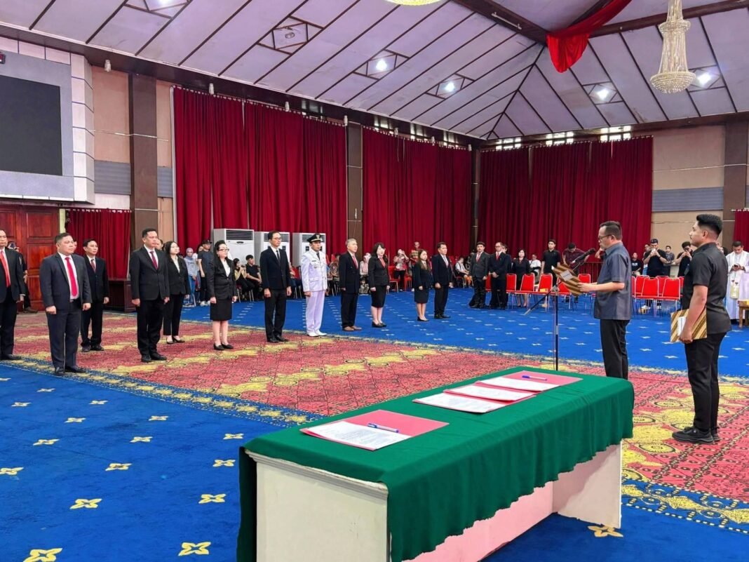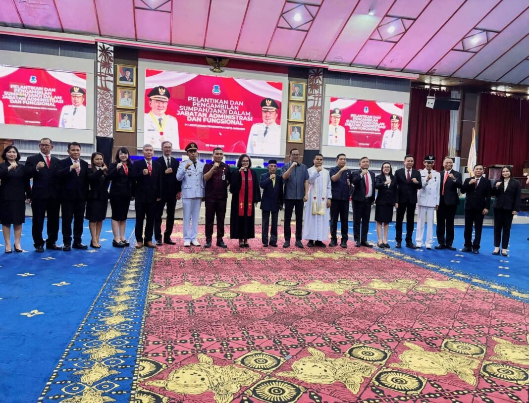 Pemerintah Kota (Pemkot) Manado Menggelar Pelantikan dan Pengambilan Sumpah/Janji Jabatan Administrasi dan Fungsional di Lingkungan Pemerintah Kota Manado, di Aula Serbaguna Pemerintah Kota Manado. Jumat (6/3/2026).