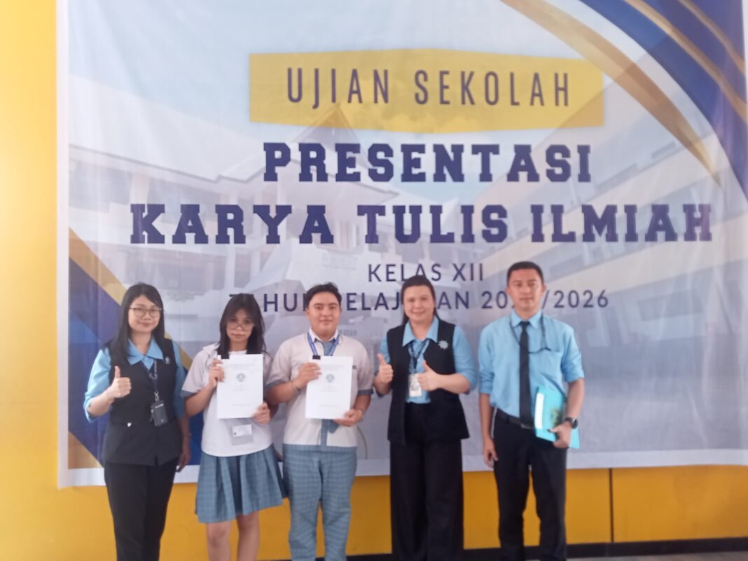 “Pelaksanaan di tahun ke 3 ujian sekolah presentase karya tulis ilmiah yang diikuti peserta sebanyak 302 siswa,”ujar Kepala Sekolah, Ketty Lengkong, S.Sos,MPd, Senin (13/4/2026).